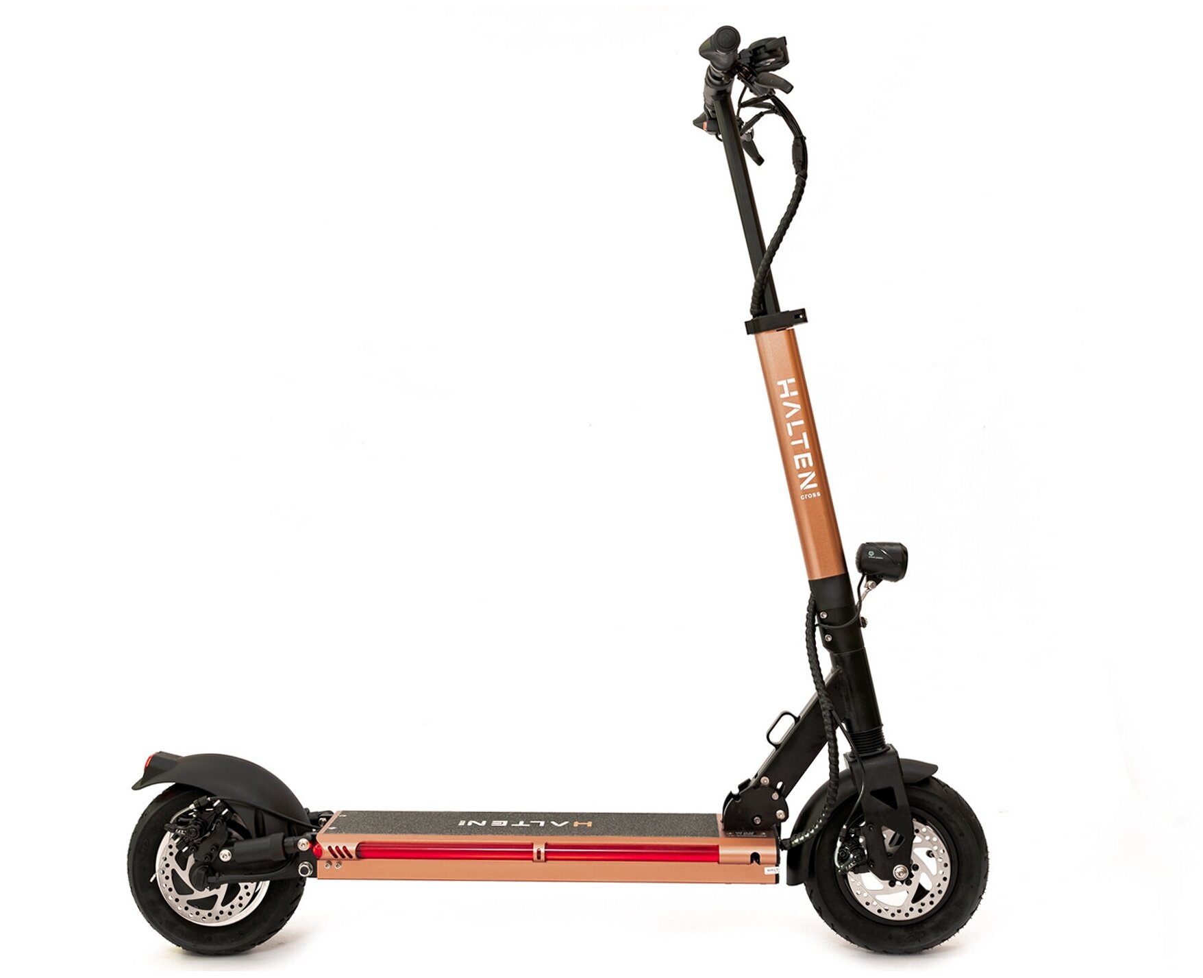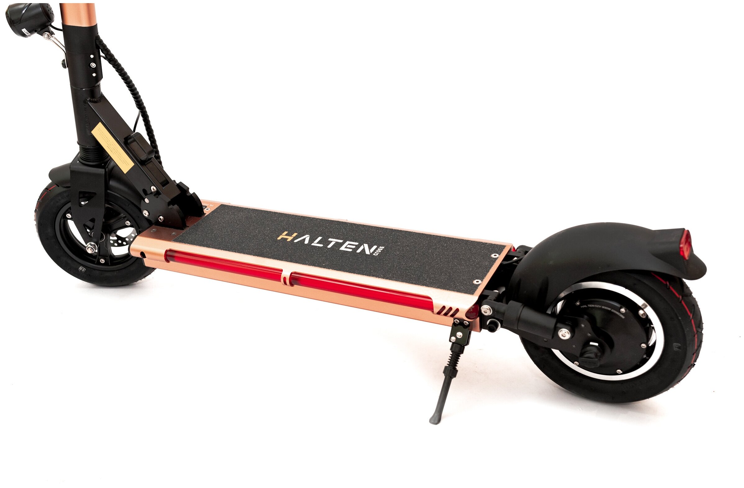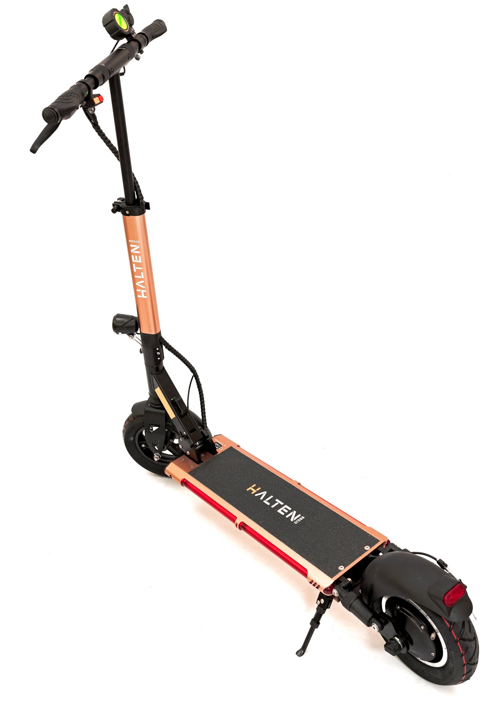 16059 [Электросамокат 10"] HALTEN Cross 800W 52V/18Ah медный {800W, задний привод, 23кг, до 55км/ч, до 55км, 120кг, передний дисковый механический тормоз}99 990
