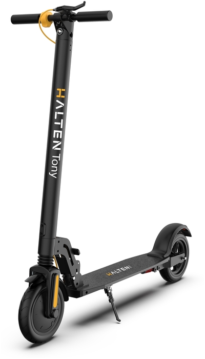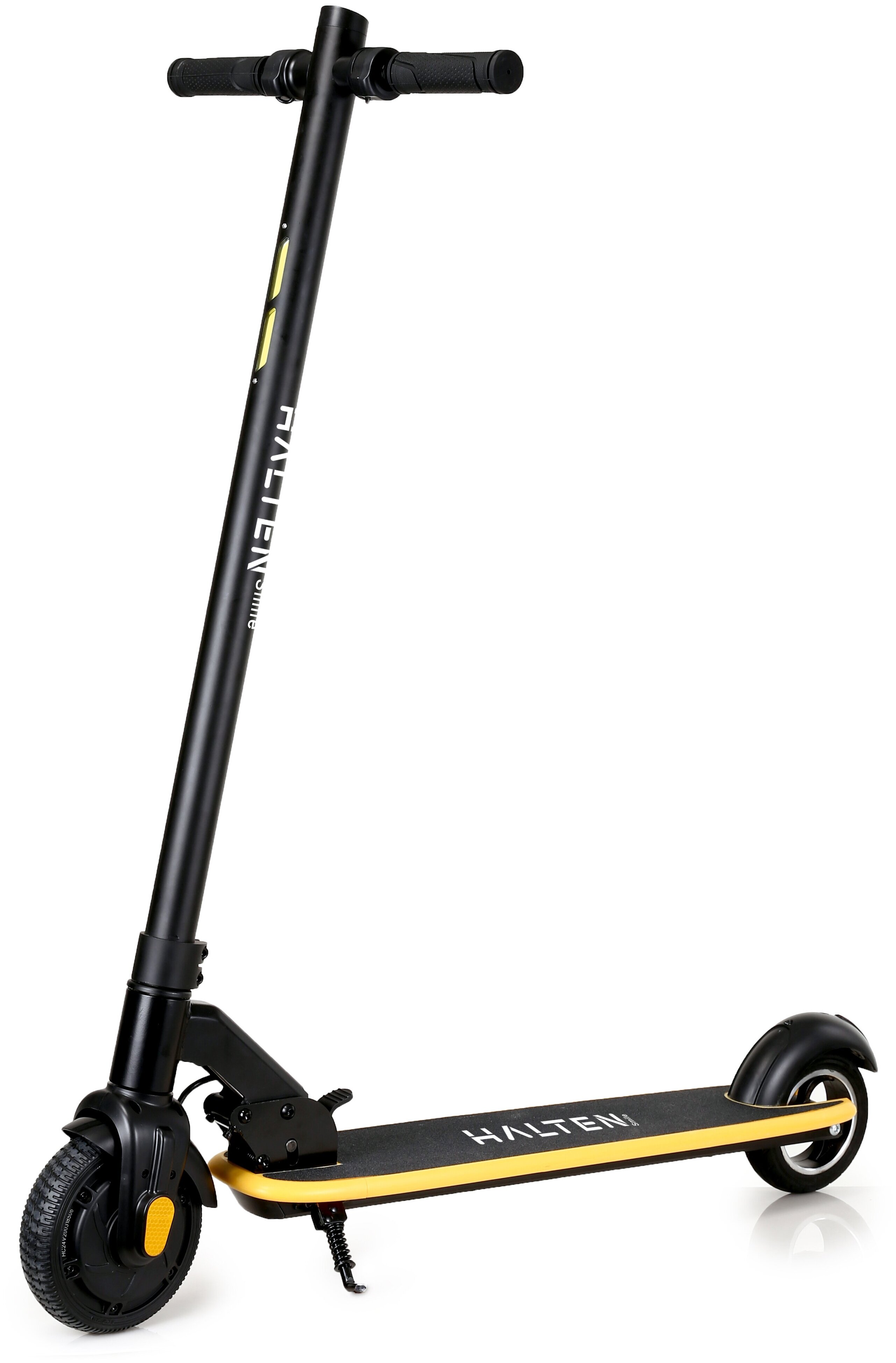 16051 [Электросамокат 8.5"] HALTEN Tony 350W 36V/7.5Ah черно-желтый {350W, передний привод, 12,5кг, до 30км/ч, до 20км, 100кг, передний рекуперативный и задний дисковый ножной тормоз}