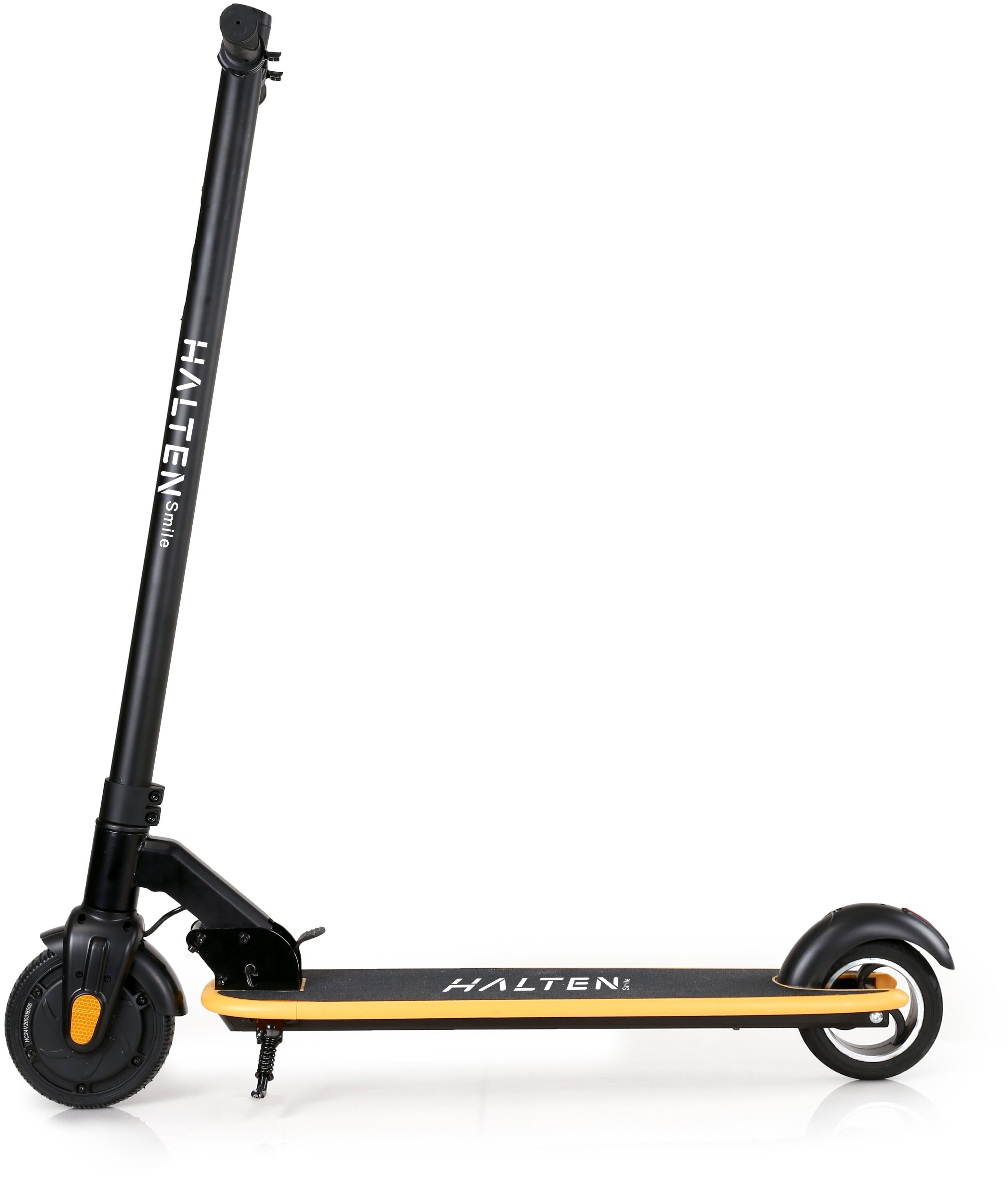 16054 [Электросамокат 6.5"] HALTEN Smile 250W 24V/5Ah желтый {250W, передний привод, 9.6кг, до 25км/ч, до 16км, 90кг, передний рекуперативный и задний ножной тормоз}24 990